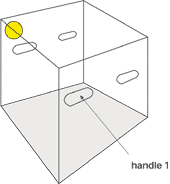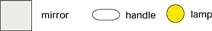 Vision Master 5 4 handles 1 lamp 1 mirror The mirror lies on the bottom. The lamp, hanging on the upper edge of the box, appears to stand in depth of the floor.