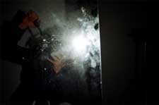 Diaprojektoren, Spiegeln und Blitzlichtern, auf der Suche nach einem Ausgang.